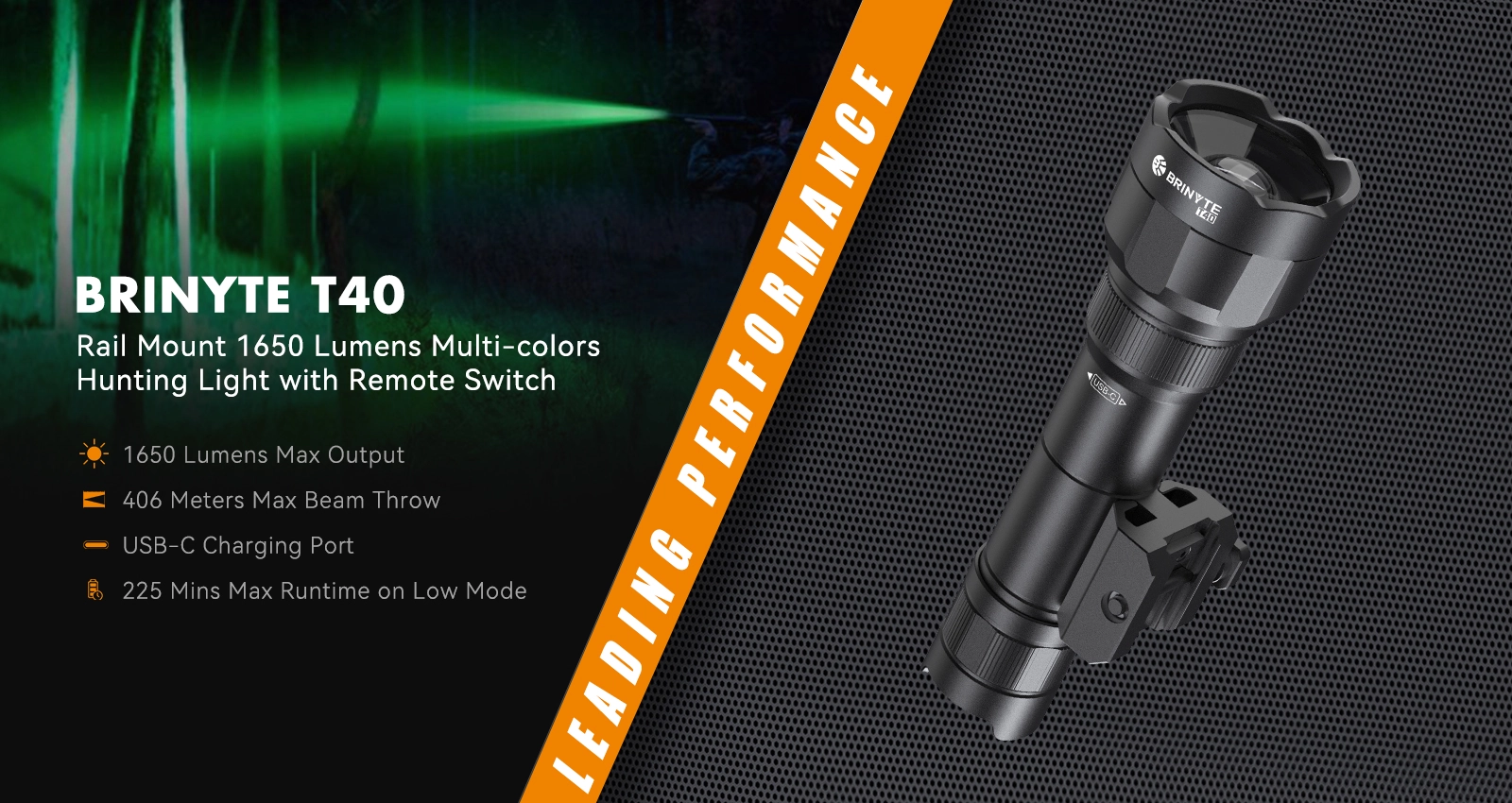 The Brinyte T40 is a USB-C rechargeable multifunctional flashlight specially designed for night hunting. With powerful brightness, adjustable modes, and reliable long-distance illumination, it helps hunters track and spot targets with confidence in low-light environments. Beyond hunting, the T40 is also an excellent choice for camping, fishing, emergency repairs, and everyday backup lighting, making it a versatile companion for both outdoor and daily use.